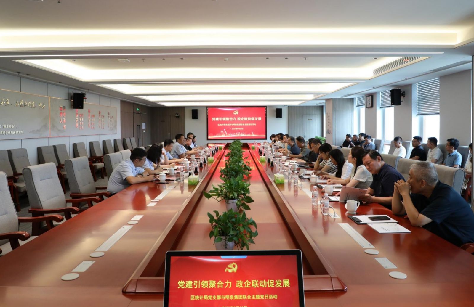 区统计局党组成员、副局长王凯表示,政企联合开展主题党日活动,是加强党的建设、创新党建载体的一项重要探索。他指出,区统计局作为宏观经济运行的“监测站”,承担着数据精准管理、服务决策发展的重要职责,而企业作为市场经济的主体、数据生产的源头,双方具有天然的密切联系。此次活动将推动三方面合作共建:一是共筑连心桥,在深化认识中凝聚新共识,增强服务区域发展的责任感和使命感。二是共话同心圆,在交流互鉴中激发新动能。围绕“党建+业务”深度融合,共同提升数据质量,助力政府科学决策和企业战略规划。三是共赴新征程,建立常态化沟通机制,持续优化服务,与明泉共同守护数据质量生命线。