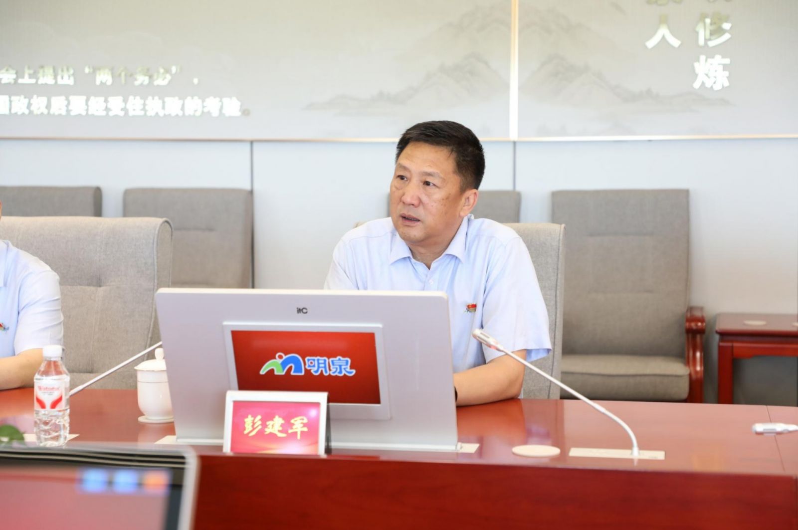 座谈交流会上,彭建军详细介绍了明泉集团自退城进园以来在党建引领发展、产业转型升级、科技创新突破以及企业文化建设等方面取得的显著成果。
