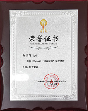 2017“影响济南”年度经济人物评选活动颁奖典礼在龙奥大厦隆重举办,集团董事长孙洪海获此殊荣。