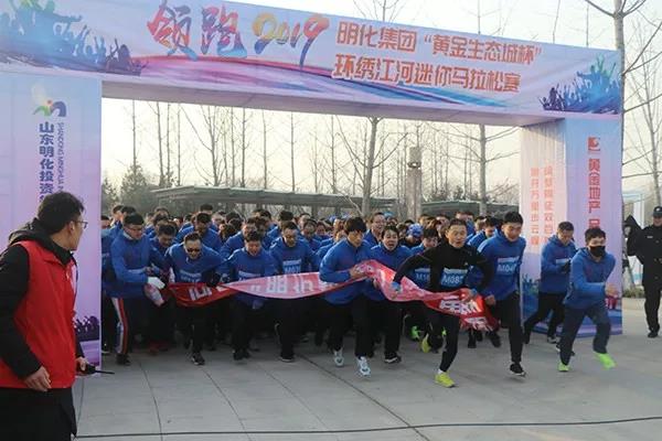 绣江河畔,清照故里。2019年1月1日,明化集团联合黄金生态城、章丘区绣江河公园管理处、章丘马拉松运动协会,共同举办“领跑2019!明化集团‘黄金生态城杯’环绣江河迷你马拉松比赛”。明化集团健跑团、明化义工爱心基金同时启动。明化集团董事长孙洪海、常务副总殷传光、党委副书记仇健、副总经理郭彦超、副总经理孙志田、山东黄金生态城常务副总经理齐欣、章丘马拉松运动协会秘书长张润涛、绣江河公园管理处主任李荣立及集团团员青年、各单位跑步爱好者、章丘马拉松运动协会成员,共近400人参加。