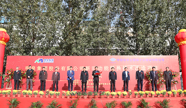 11:18,出席仪式的各位领导共同按下项目开工启动球,孙洪海宣布明泉集团新旧动能转换技术改造项目开工。