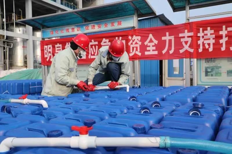 2月2日,集团第一批1000桶、共25吨浓度为5%的过氧化氢水溶液全部灌装完毕。2月3日起,集团将按照区政府应急防控物资的统一调配部署安排,将应急物资分批次陆续发往章丘区明水街道、高官寨街道、文祖街道、双山街道、白云湖街道等各乡镇驻地,全力保障重点领城、敏感区域和公共区域的疫情防控消毒消杀需要,为打赢疫情防控阻击战贡献力量。