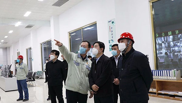 边祥为一行参观了明泉科技中央控制室和职工餐厅,深入了解集团疫情防控、安全管理、生产运营、员工生产生活等情况。