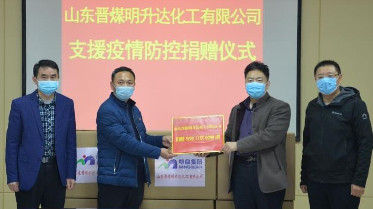 2020年3月3日上午,集团支援宁阳县疫情防控捐赠仪式在宁阳县第二人民医院举行。宁阳县卫生健康委员会、宁阳县第二人民医院领导、山东晋煤明升达化工有限公司党委副书记吴海玖出席捐赠仪式。吴海玖代表集团捐赠6000个医用N95口罩。