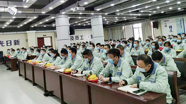 孙洪海结合歌曲《君子行》与大家分享了两方面认识。一是“自强不息,厚德载物”。这句话出自《周易》,值得大家细细品味。“自强不息”是“天行健”自然运行大道对人的要求。企业搬迁之初,我们将“自强不息”立在办公楼前。在这七年多的时间里,我们构建了以“自强不息,自利利他”为核心的文化理念,并在不同发展阶段提出“搭建平台,整合资源,科学发展,诚信共赢”“膨胀规模,涵养资源,提升优势,强基固本”“百年企业,辉光日新,惠及员工,回报社会”及安全、环保等一系列理念。我们将这些理念融入优秀国学文化学习,贯彻到工作中去,在实践中学习提升,在逆境中成长。如今企业综合实力进一步提升,我们完成了三套加压气化装置的基础产业布局,成为山东省乃至全国行业内具有核心竞争力的“头部企业”,奠定了企业未来10到20年可持续发展的强大基础。这是我们历尽艰辛、一路走来取得的成果,值得自豪。近年来伴随着企业不断发展,企业内部实行了股权结构调整、三项制度改革、模拟股份制改革等多项改革措施。我们在夯实基础产业的同时,实现了企业的高效率运转,改革得到了大家的认同和参与,我们携手并肩共谋发展,实现共同发展和共同富裕。近年来我们通过企业文化体系的构建,形成了强大文化认知和精神力量的源泉,让我们在失败时不互相指责、怨天尤人,在取得成绩时,静心反思,实现进一步成长。“自强不息”是企业生存发展的强大精神支柱,“厚德载物”使企业走得更稳、更远。随着企业发展轻资产化、资产证券化,企业价值也会得到更多的发现和认同。但成绩也容易让人膨胀和躁动,只有“厚德”才能时刻保持清醒头脑,正确看待自己,抓住机遇,推动企业持续发展。二是“戒骄戒躁,艰苦奋斗”。“长期坚持艰苦奋斗”是我们始终要坚守的理念。我们要时刻保持忧患意识,谨记历史教训,多读历史经典,鉴古知今。过去几年化工行业经历了深幅调整,当前新型煤化工企业迎来了发展的春天,我们要牢牢抓住这一机遇,继续保持戒骄戒躁、艰苦奋斗的工作作风,在夯实基础产业的同时,全面转向“新三高”战略实施。大年初五,章丘区新项目集中开工仪式选在我们企业举行,这是区委区政府和其他企业对我们的普遍认可,也是企业综合实力提升的体现。展望未来,我们要始终秉持“自强不息,厚德载物”的基本认知和“戒骄戒躁,艰苦奋斗”的工作作风,在新阶段发扬“孺子牛”“拓荒牛”“老黄牛”精神,继续营造“真诚、友爱、和谐”的工作氛围,使企业管理、文化认知、核心竞争力和综合效益更上一层楼。
