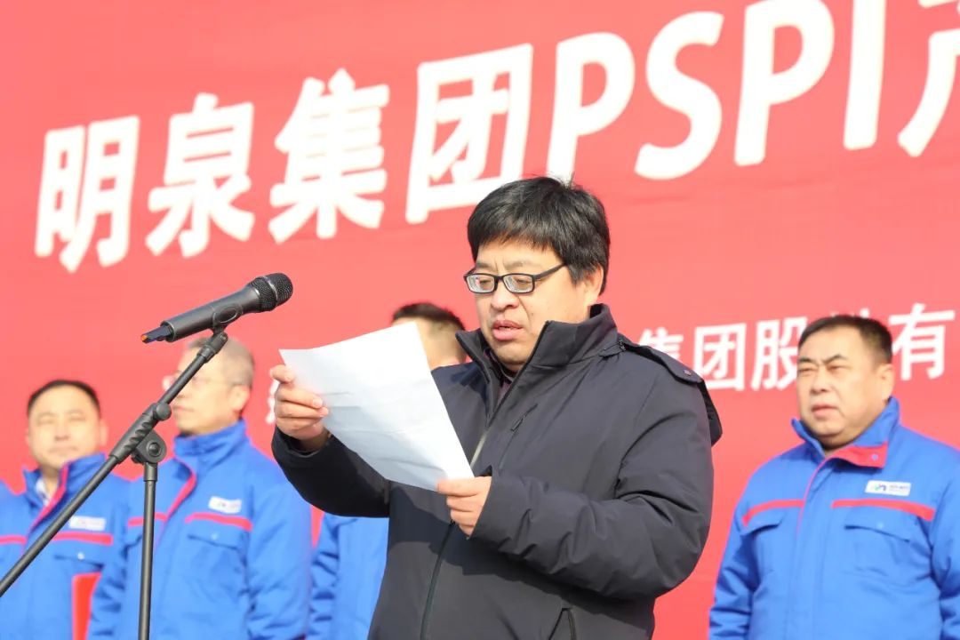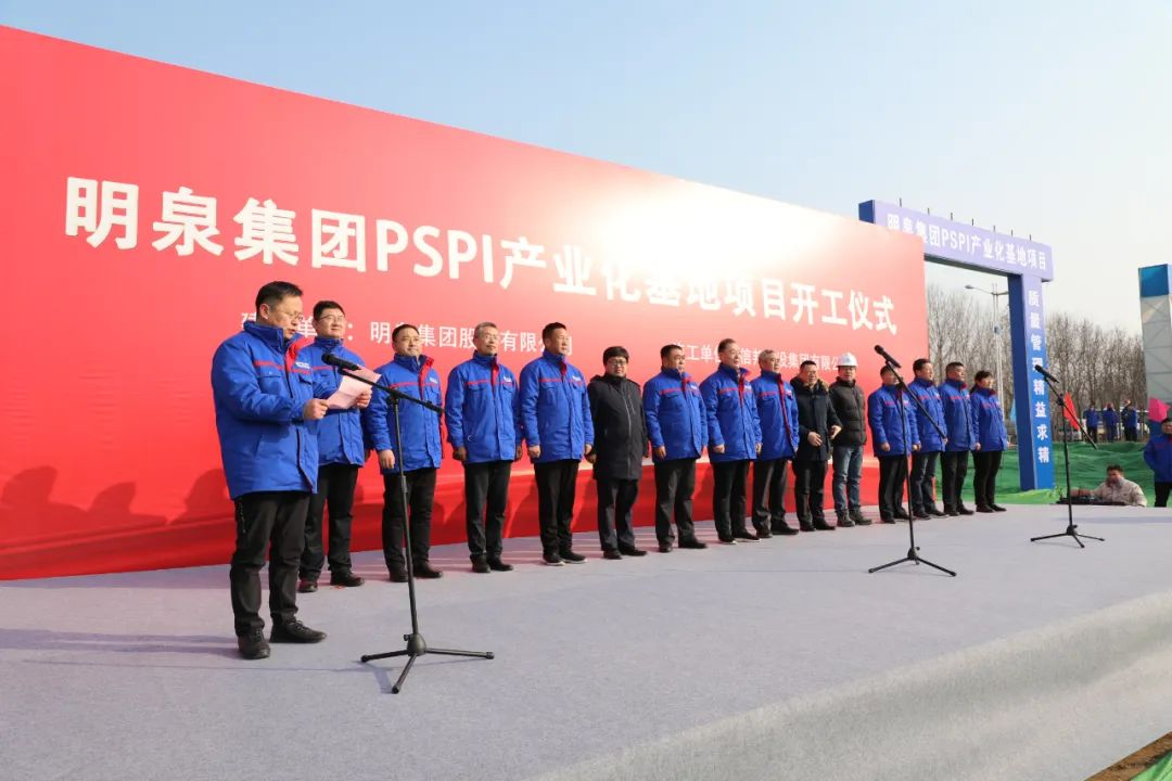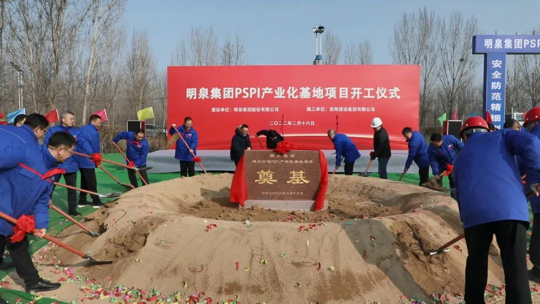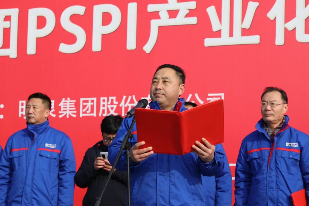 孙洪海宣布明泉集团PSPI产业化基地项目正式开工。随着现场礼炮齐鸣和挖掘机、工程车的响亮鸣笛,PSPI产业化基地项目正式破土动工。参加开工仪式的领导共同为项目奠基。