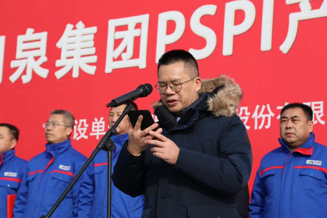 集团党委书记、董事长孙洪海致辞。他讲道,光敏聚酰亚胺(PSPI)是芯片封装与制造必需的关键材料,我们国家亟需建立自主可控的半导体产业链,解决芯片“卡脖子”难题;国内市场急需PSPI国产化替代进口,确保供应链稳定安全。我们必须以时不我待的紧迫感、以舍我其谁的精气神,按照既定计划保安全、保质量地推进项目建设。PSPI产业化基地项目是集团自2017年以来实施“新三高”战略取得的重大进展,对于建设高新技术突出的高科技明泉意义重大。希望明士新材料公司和承建单位齐心协力,在确保安全的前提下,高标准、高质量、高效率推进项目建设,力争早日建成投产,为集团打造科技明泉、推进高质量发展再立新功。