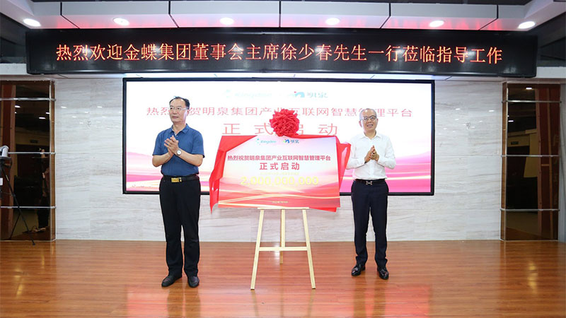 7月19日下午,金蝶国际软件集团创始人、董事会主席兼CEO徐少春一行来明泉集团考察。在参观了明泉科技公司中央控制室后,召开座谈会。明泉集团董监事会、经理办公会成员及部分管理人员参加会议。明泉集团董事长孙洪海主持会议。