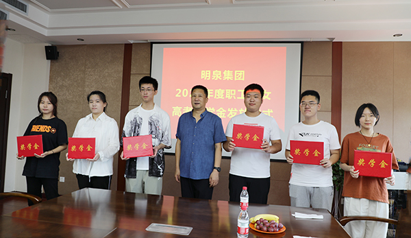 彭建军代表明泉集团为每名优秀学子颁发了5000元奖学金,并向他们表示祝贺。他勉励各位优秀学子要感恩父母的培养和付出,希望各位优秀学子在大学里胸怀理想、积极向上、努力学习,实现自身价值,早日成为国家栋梁之才。各位优秀学子介绍了各自的学习经验,表达了对明泉的感恩之情。