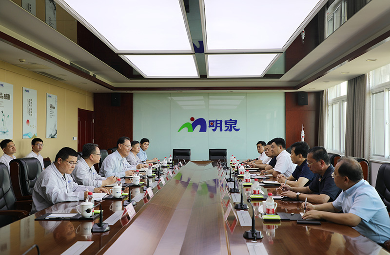 马志勇实地考察了明化公司中央控制室和聚苯硫醚项目建设现场,在3号办公楼五楼会议室进行座谈。孙洪海汇报了明泉集团基础产业布局、“新三高”项目推进情况及产业链补链、强链、延链的发展思路,重点介绍了明化技改项目、聚苯硫醚项目、光敏聚酰亚胺项目、吡啶及3-甲基吡啶扩能项目建设进度和甲醇下游产品链延伸项目规划,并根据项目建设情况提出配套政策支持需求。