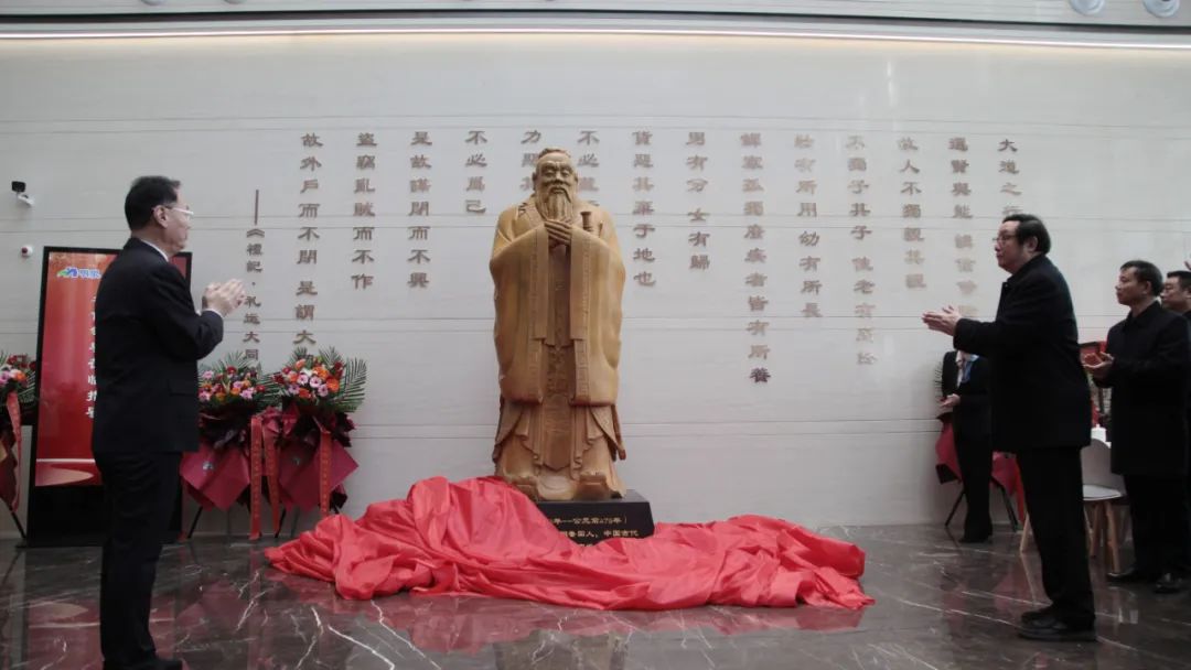 签约活动前,明泉集团参与活动的员工观看了明泉龙狮队的舞龙、舞狮表演,并举行了隆重的升旗仪式。随后,在明泉大厦一楼大厅,孙洪海与孙华田为明泉宝鼎揭幕,现场员工向明泉宝鼎行注目礼。孙洪海与李军为孔子像揭幕,在孙洪海带领下,现场员工齐诵《礼记·礼运大同篇》。