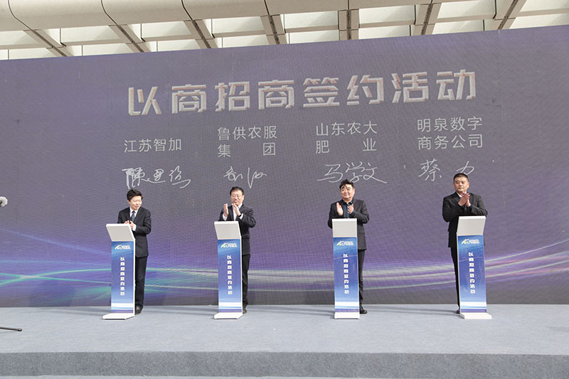 山东农大肥业科技股份有限公司董事长马学文、山东供销农业服务集团股份有限公司董事长刘刚、江苏智加能源科技有限公司总经理陈建强等三位合作单位代表发言。明泉数字商务公司执行董事、总经理蔡力代表公司与山东农大肥业科技股份有限公司、山东供销农业服务集团股份有限公司和江苏智加能源科技有限公司分别签订合作协议。此次签约对于明泉产业链延伸、章丘区经济发展、省内粮食安全和生态环境治理将起到积极的促进作用。