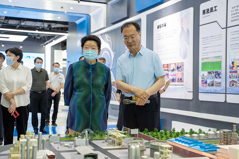 孙洪海汇报了明泉集团在关爱青年员工和青少年成长成才方面所做的主要工作以及明泉转型升级发展、企业文化建设等情况。顾秀莲详细了解了明泉集团关工委的组织建设及开展的关爱帮助青年员工、青少年成长成才的各项活动。在调研过程中,顾秀莲对明泉集团的转型升级发展和企业文化建设给予高度肯定。她指出,明泉从1958年全国首批13家小氮肥示范厂一步步发展、转型升级走到今天,把中华优秀传统文化与企业发展实践相结合的做法非常好。地方关工委可以组织青少年参观明泉集团,了解明泉的发展史和中华优秀传统文化在企业实践中的应用。