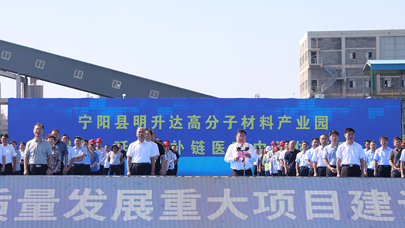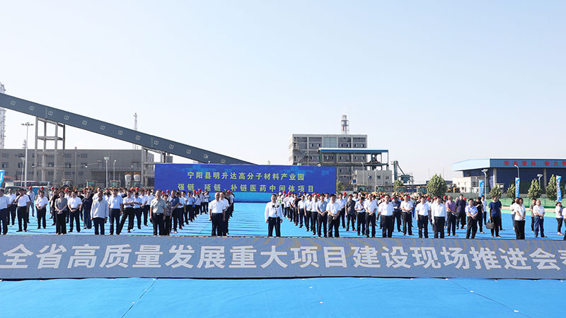泰安市分会场设在明升达强链、延链、补链医药中间体项目现场。泰安市委书记、市人大常委会主任杨洪涛,泰安市委常委、市纪委书记程远军,泰安市委常委、副市长常绪扩,泰安市委常委、秘书长张颖,宁阳县委书记王立军,县委副书记、县长刘灿玉等市县领导以及明泉集团党委书记、董事局主席孙洪海,明升达公司吴海玖参加会议。