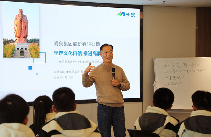 11月16日上午,明泉集团党委书记、董事局主席孙洪海为明泉集团47名新员工授课。