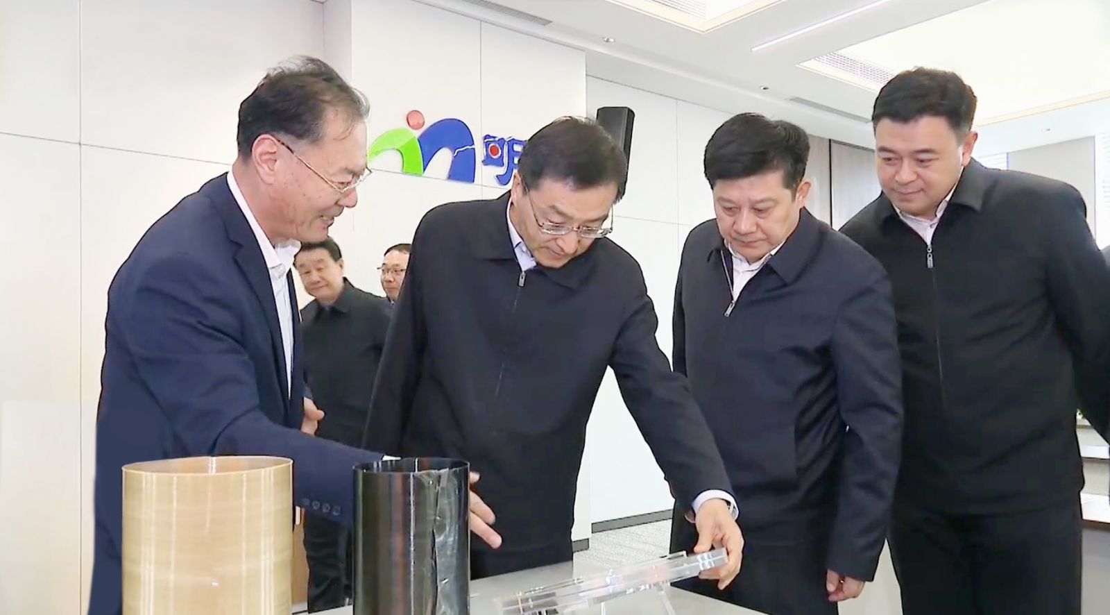 在明泉集团生产指挥中心,刘强通过数字孪生平台、视频监控系统了解了明泉集团章丘园区、宁阳园区各生产装置智能化生产情况。现场察看了聚苯硫醚、光敏聚酰亚胺项目的相关产品,了解了产品研发、产业化以及市场情况。刘强详细询问了明泉集团低位热回收项目的工艺技术、供热面积、节能降耗情况,对项目的运行效果给予肯定。刘强指出,希望明泉集团做好产业链延链强链文章,不断扩大企业规模。