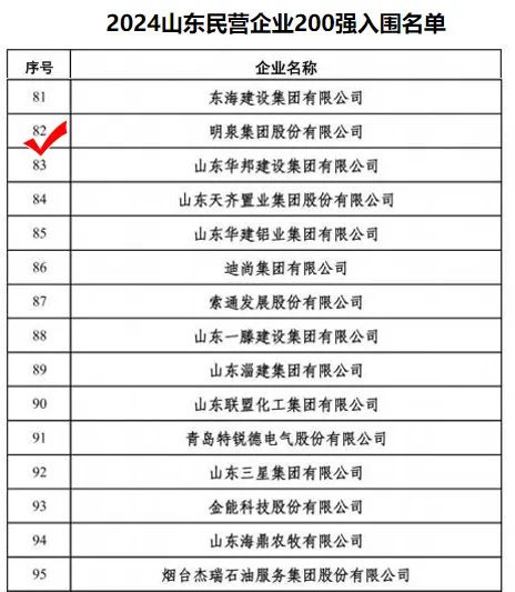 近年来,随着多个转型升级项目陆续建成投运、达产达效,以及贸易和电商发展实现从无到有、从小到大,明泉集团生产经营总规模大幅扩大。此次明泉集团入围2024山东民营企业200强并名列第82位,标志着明泉集团在实现高质量发展的道路上取得里程碑式的重要进展。这是全体明泉人自强不息、共同奋斗的成果。未来三年,明泉集团将持续推进“五个现代化”建设与六大产业链打造,继续保持良好发展势头,为山东经济社会高质量发展和行业进步做出更大贡献。