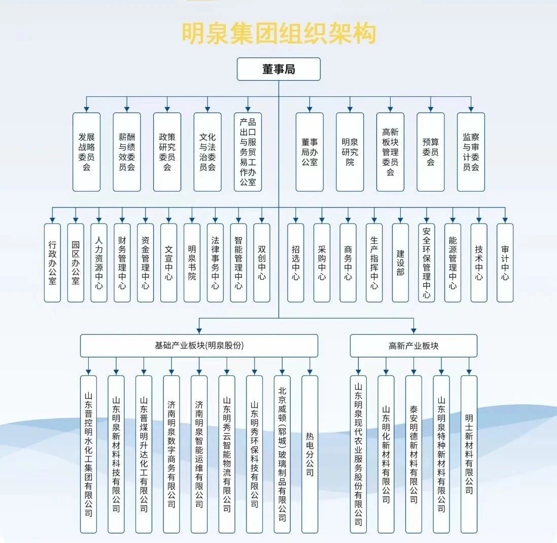 (三)明泉集团设立董事局,由我担任董事局主席。作为明泉的最高管理机构,董事局对全集团整体业务全面统辖。此次人员调整意义重大,是应对明泉内外部形势变化、适应明泉未来发展需要、促进基础产业与高端产业协同发展的必要之举。