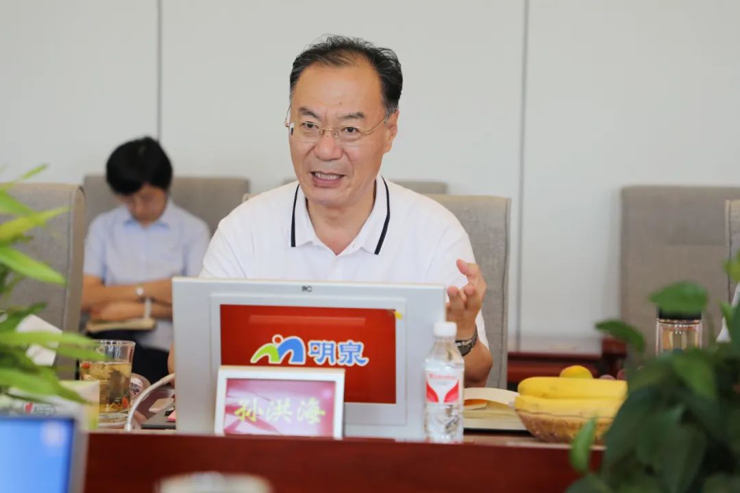 签约仪式上,孙洪海介绍了明泉集团基础产业、高新产业各版块的发展过程及高分子材料的研发、产业化、产品应用场景等情况。