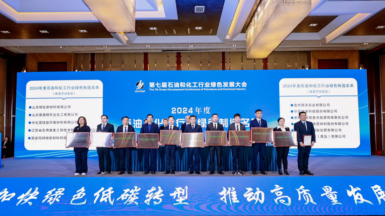 1月26日,由中国石油和化学工业联合会主办的“第七届石油和化工行业绿色发展大会”在北京召开。明泉集团旗下两家公司:山东晋煤明升达化工有限公司、山东明化新材料有限公司获评“2024年度石油和化工行业绿色工厂”。国家发改委、工信部、生态环境部、石化联合会为明泉颁发这一荣誉奖牌。