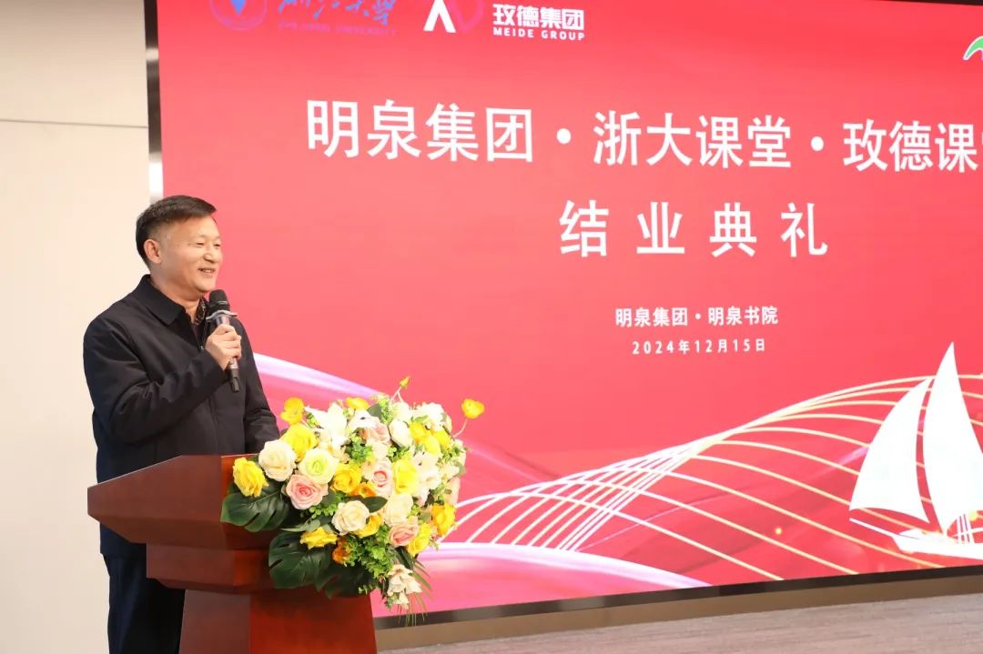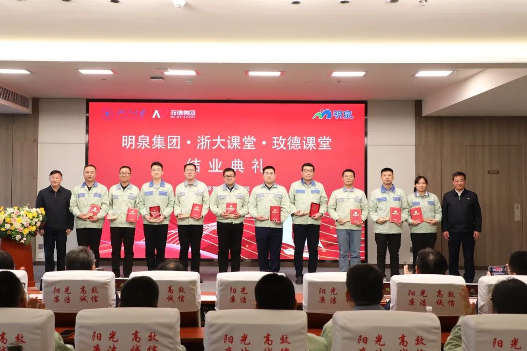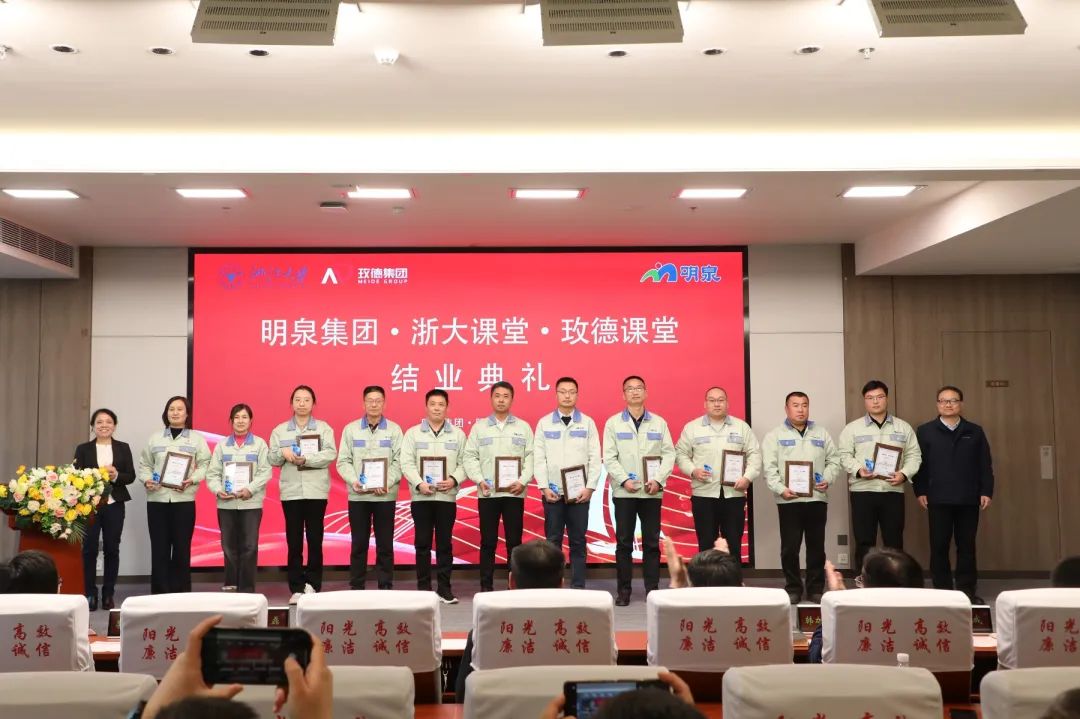 12月15日下午,明泉集团浙大课堂EMBA高级经理研修班、明泉集团玫德课堂中高层管理人员培训班结业仪式在明泉大厦二楼多功能会议室举行。