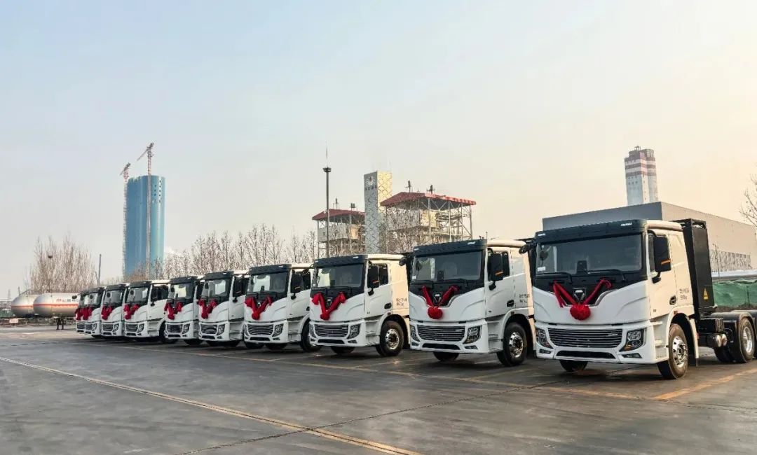1月20日下午,10辆崭新的新能源重卡落户明泉。
