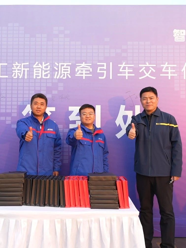 明泉集团董事局副主席李光,生产指挥中心兼能源管理中心主任张庆霖,明秀云智能物流公司党支部书记兼产权代表王鵾鹏,山东嵘创汽车销售有限公司总经理赵光波等共同见证这一重要时刻。