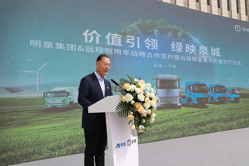 此次远程醇氢重卡的批量交付,将打造“以醇运醇”的绿色醇氢运力示范,在助力明泉集团降本增效的同时,为济南化工行业运力升级和地方企业绿色转型树立标杆。