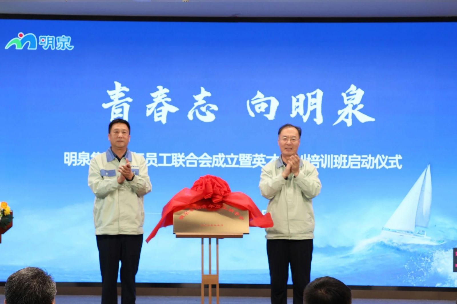 孙洪海、彭建军共同为“明泉集团青年员工联合会”揭牌。