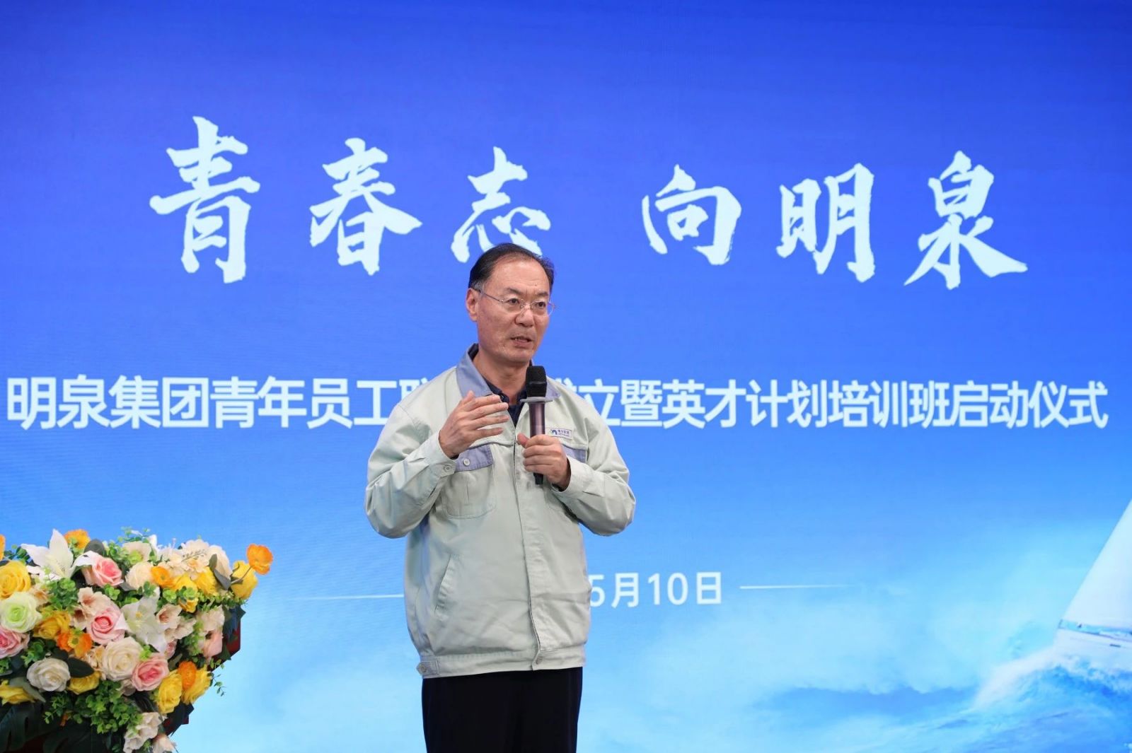“青年者,人生之春,人生之华也。”5月10日下午,明泉集团迎来青年人才发展的重要里程碑——青年员工联合会成立暨英才计划培训班启动。集团董事局主席孙洪海、党委书记彭建军、董事局副主席李光、工会主席孙庆利、职能处室负责人及青年员工代表齐聚一堂,共同见证这场凝聚青春力量的仪式。明泉集团团委书记单希宇主持。