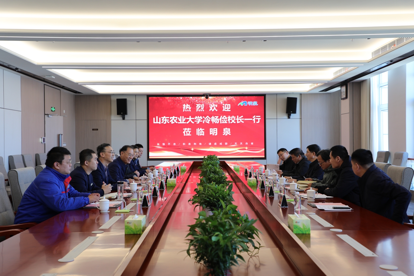 11月18日上午,山东农业大学党委副书记、校长冷畅俭一行到访明泉集团,就深化校企产研合作开展交流活动。山东农业大学学校办公室、社会合作与成果转化处、资环学院有关负责同志和专家,明泉集团董事局主席孙洪海、董事局轮值执行主席高建平、董事局副主席李光及相关部门负责人参加活动。