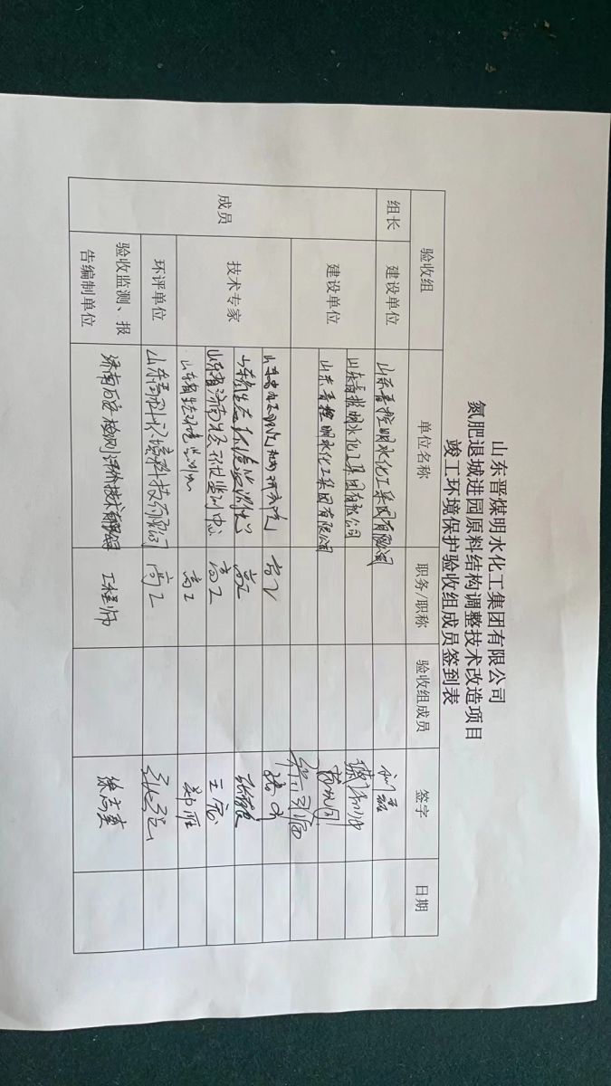山东晋控明水化工氮肥退城进园原料结构技术调整项目验收意见